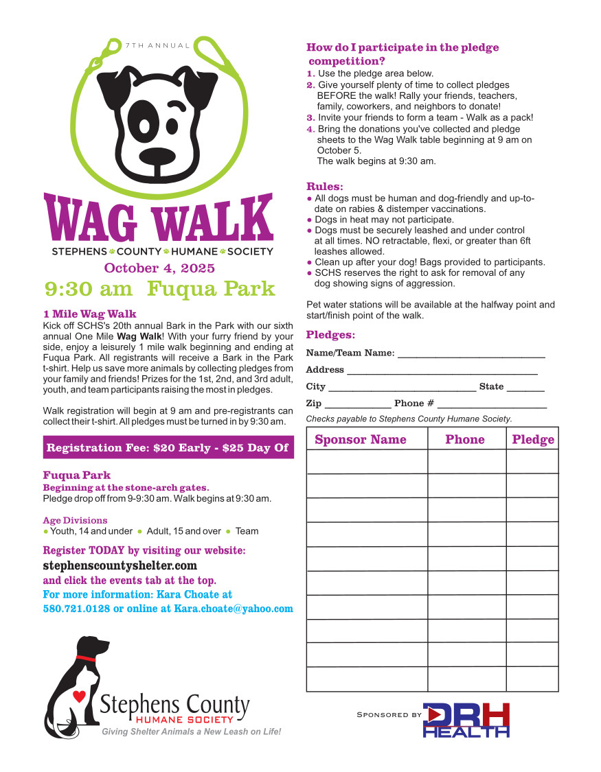 Incorporated in 1983, Stephens County Humane Society (SCHS) is a private, 501(c)3 non-profit organization. We are a safe haven for homeless dogs and cats in need of a New Leash on Life, be they owner surrenders or country strays.